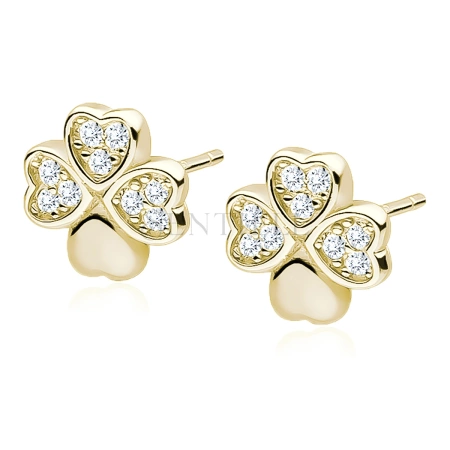 Srebrne kolczyki pr. 925 pozłacane koniczynki z cyrkoniami