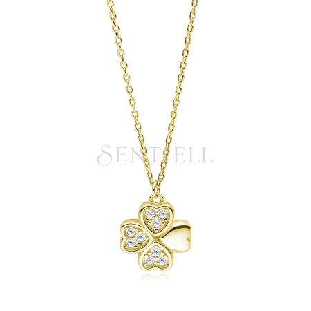 Srebrny pozłacany naszyjnik pr.925 koniczynka z cyrkoniami