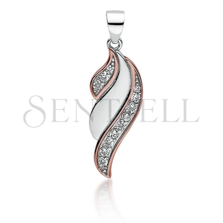 Srebrna pozłacana zawieszka pr.925 skrzydło z białymi cyrkoniami - różowe złoto