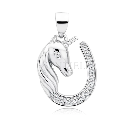 Srebrna zawieszka pr.925 podkowa - jednorożec z białymi cyrkoniami