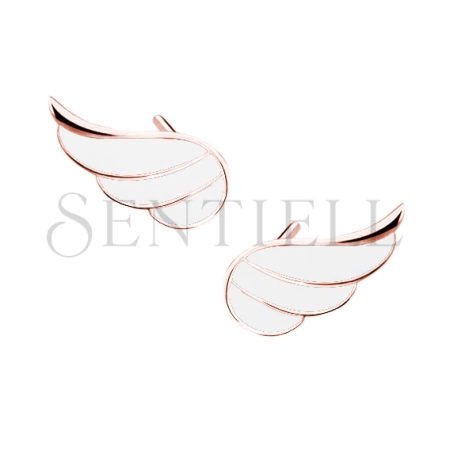 Srebrne (925) pozłacane kolczyki skrzydła z białą emalią - różowe złoto