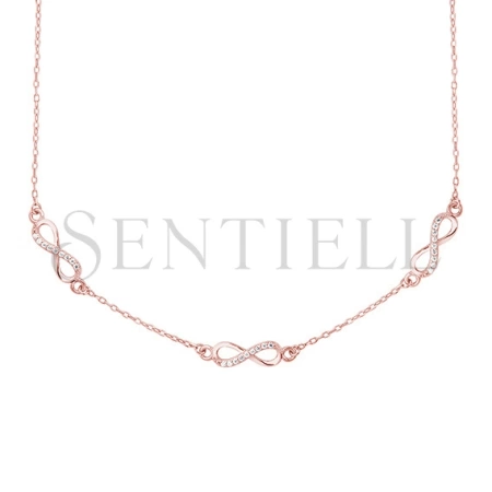 Srebrny naszyjnik pr.925 nieskończoności z białymi cyrkoniami - pozłacany różowym złotem