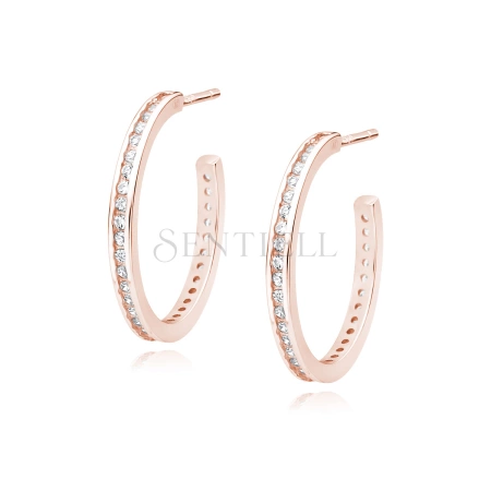 Srebrne pozłacane różowym złotem kolczyki pr.925 otwarte kółka z cyrkoniami