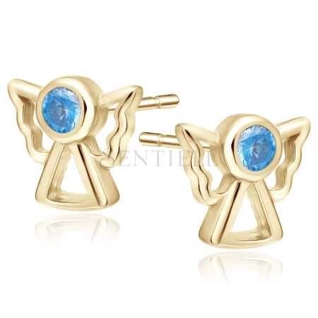 Srebrne pozłacane pr.925 kolczyki aniołki z akwamarynową cyrkonią