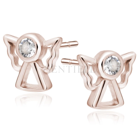 Srebrne pozłacane różowym złotem pr.925 kolczyki aniołki z białą cyrkonią