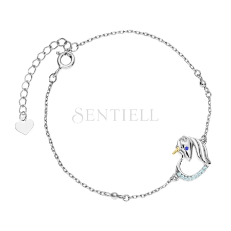 Srebrna bransoletka pr.925 - jednorożec z akwamarynowymi cyrkoniami i szafirowym okiem