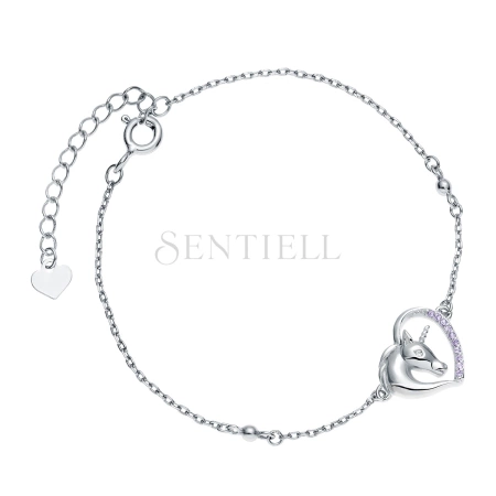 - Srebrna bransoletka pr. 925 serce jednorożec