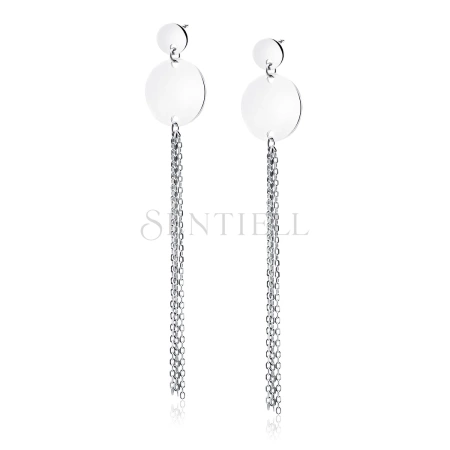 Srebrne (925) kolczyki - kółka z łańcuszkami