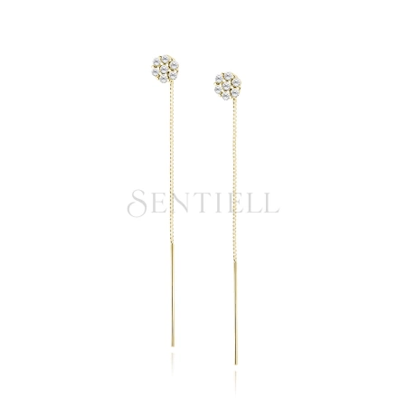 Srebrne pozłacane kolczyki pr. 925 - kwiatek z białymi cyrkoniami