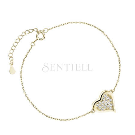 Srebrna złocona bransoletka pr.925, serce z cyrkoniami
