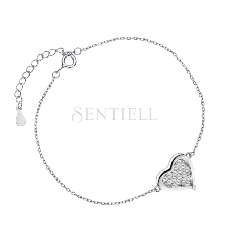 Srebrna bransoletka pr.925, serce z cyrkoniami