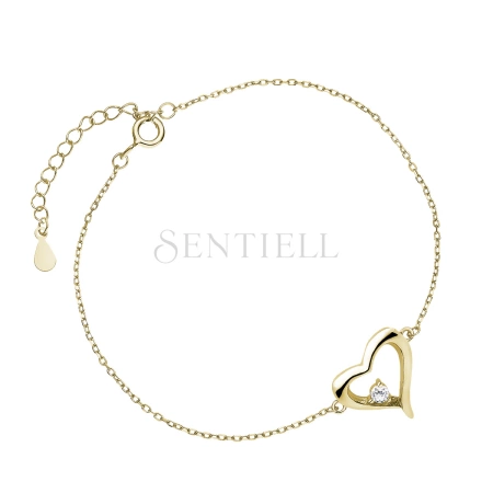 Srebrna złocona bransoletka pr.925, serce z cyrkonią