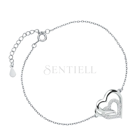 Srebrna bransoletka pr. 925 potrójne serce z białymi cyrkoniami