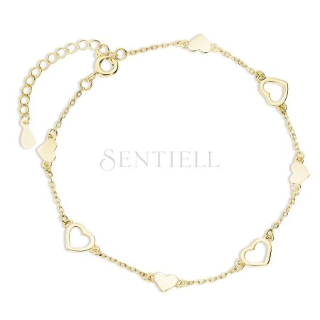 Srebrna (925) pozłacana bransoletka - serca