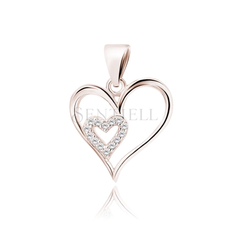 Srebrna pozłacana zawieszka pr.925 serce z białymi cyrkoniami - różowe złoto