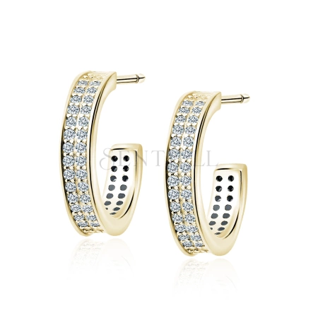 Srebrne pozłacane kolczyki pr.925 otwarte koła z dwoma rzędami cyrkonii