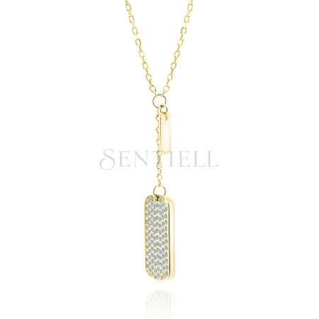 Srebrny pozłacany naszyjnik pr.925 - nieśmiertelnik z białymi cyrkoniami i blaszką