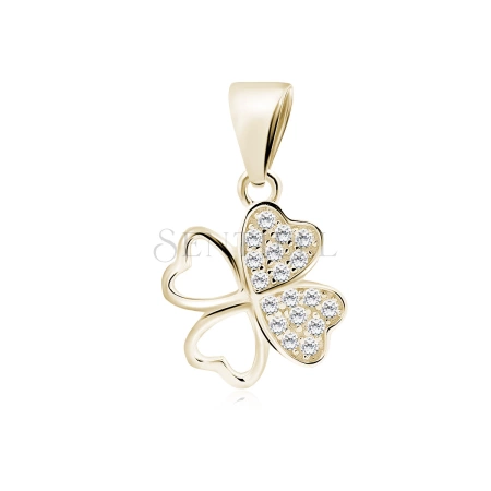 Srebrna pozłacana zawieszka pr.925 koniczynka z białymi cyrkoniami