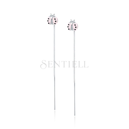 - Srebrne kolczyki pr. 925 różowa biedronka
