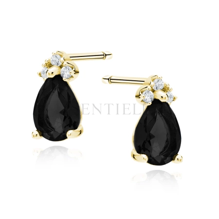 Srebrne pr.925 pozłacane kolczyki z czarną cyrkonią