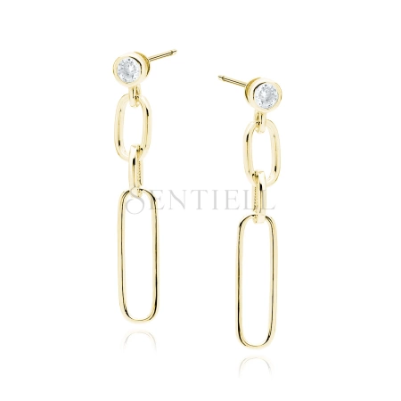 Srebrne pozłacane kolczyki pr.925 - trzy ogniwka łańcuszka z białą cyrkonią