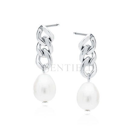- Srebrne kolczyki pr. 925 perełki na łańcuchu