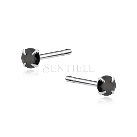 Srebrne kolczyki pr.925 Czarna cyrkonia okrągła średnica 3mm