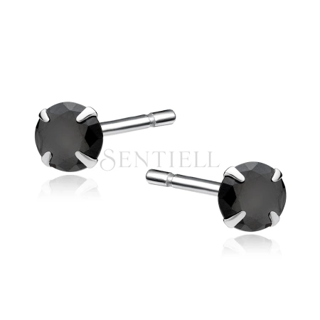 Srebrne kolczyki pr.925 Czarna cyrkonia okrągła średnica 5mm