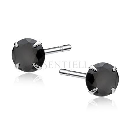 Srebrne kolczyki pr.925 Czarna cyrkonia okrągła średnica 6mm