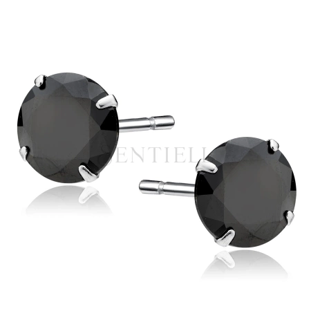 Srebrne kolczyki pr.925 Czarna cyrkonia okrągła średnica 8mm