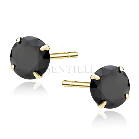 Srebrne pozłacane kolczyki pr.925 Czarna cyrkonia okrągła średnica 7mm