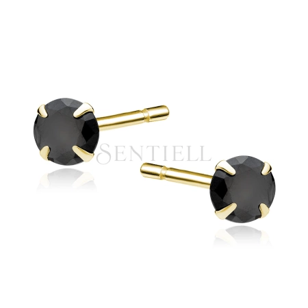 Srebrne pozłacane kolczyki pr.925 Czarna cyrkonia okrągła średnica 5mm