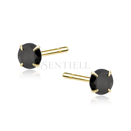 Srebrne pozłacane kolczyki pr.925 Czarna cyrkonia okrągła średnica 4mm