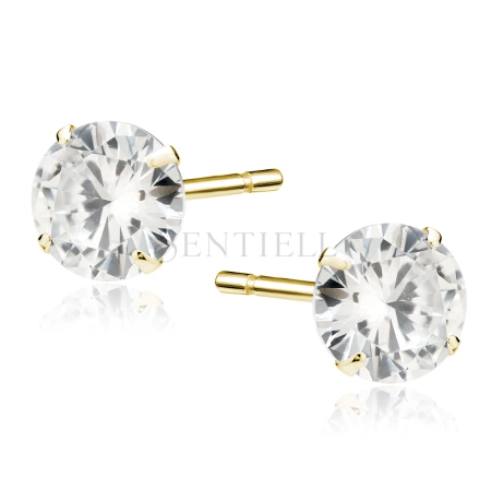 Srebrne pozłacane kolczyki pr.925 Biała cyrkonia okrągła średnica 7mm