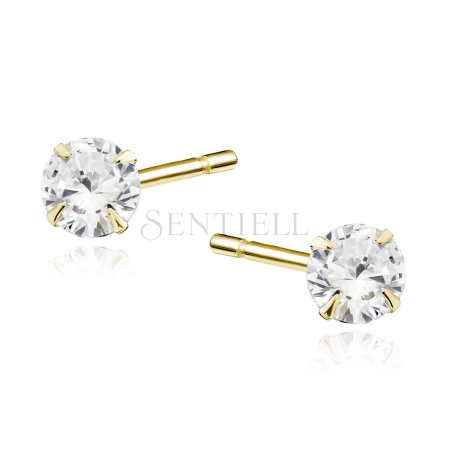 Srebrne pozłacane kolczyki pr.925 Biała cyrkonia okrągła średnica 5mm