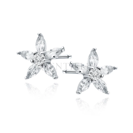 Srebrne kolczyki pr.925 kwiatek z białymi cyrkoniami