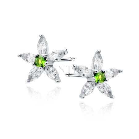 Srebrne kolczyki pr.925 kwiatek ze szmaragdową cyrkonią