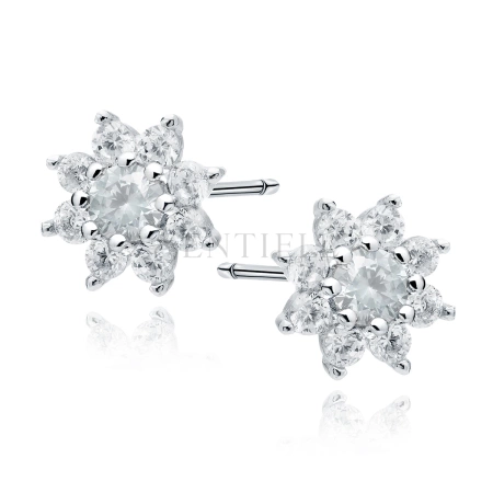 Srebrne kolczyki pr.925 kwiatek z białymi cyrkoniami