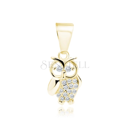Srebrna pozłacana zawieszka pr.925 z białymi cyrkoniami - sówka