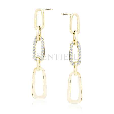 Srebrne pozłacane kolczyki pr. 925 ogniwka łańcuszka z białymi cyrkoniami