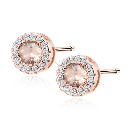 Srebrne pr.925 okrągłe kolczyki z cyrkonią w kolorze morganitu - różowe złoto