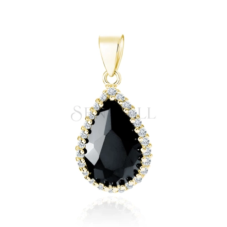 Srebrna pozłacana zawieszka pr.925 z czarną cyrkonią