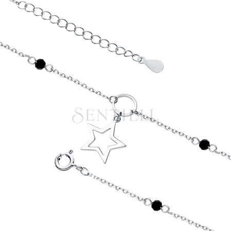 Srebrna bransoletka na nogę pr.925 z gwiazdą i czarnymi spinelami