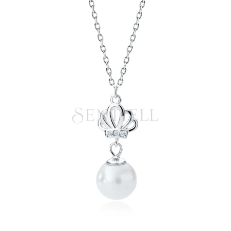 Srebrny naszyjnik pr.925 z perłą i białą cyrkonią