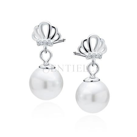 Srebrne kolczyki pr. 925 perły z białą cyrkonią