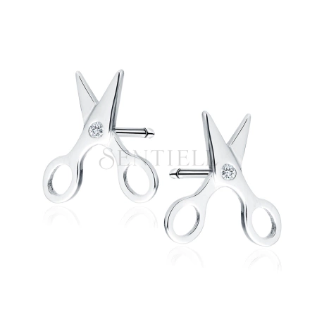 Srebrne kolczyki pr.925 nożyczki z białymi cyrkoniami