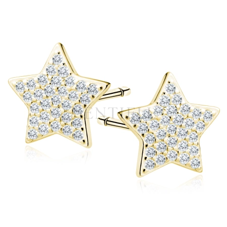 Srebrne pozłacane kolczyki pr.925 gwiazdy z białymi cyrkoniami