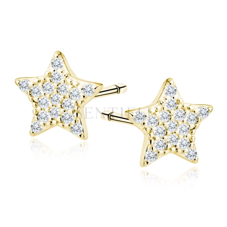 Srebrne pozłacane kolczyki pr.925 gwiazdy z białymi cyrkoniami