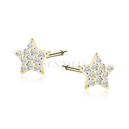 Srebrne pozłacane kolczyki pr.925 gwiazdy z białymi cyrkoniami