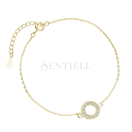 Srebrna pr.925 pozłacana bransoletka celebrytek okrągła zawieszka z białymi cyrkoniami